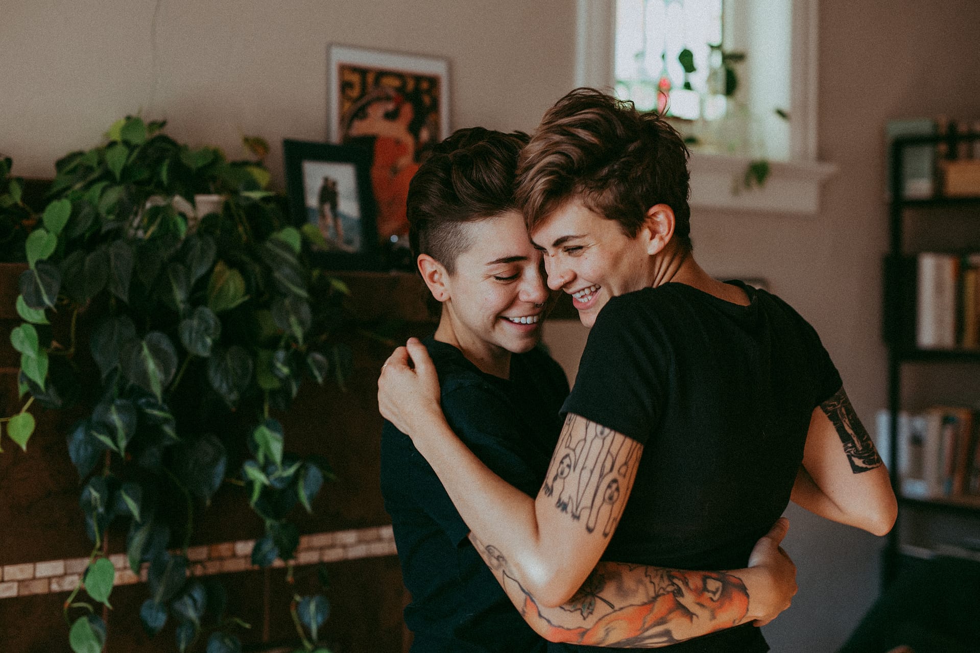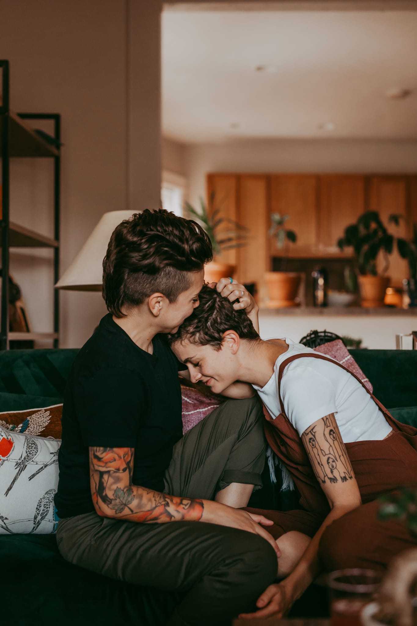 Nik & Nini are two of my new favorite people. I met Nini at Jelly Cafe in Denver awhile back and knew I wanted to photograph her immediately. We connected via Instagram which is where I realized that she had this deep and beautiful connection with her girlfriend, Nik and as a Denver couples photographer I was so excited to create imagery of them in their home in downtown Denver. Their space is full of welcoming energy, light & love.