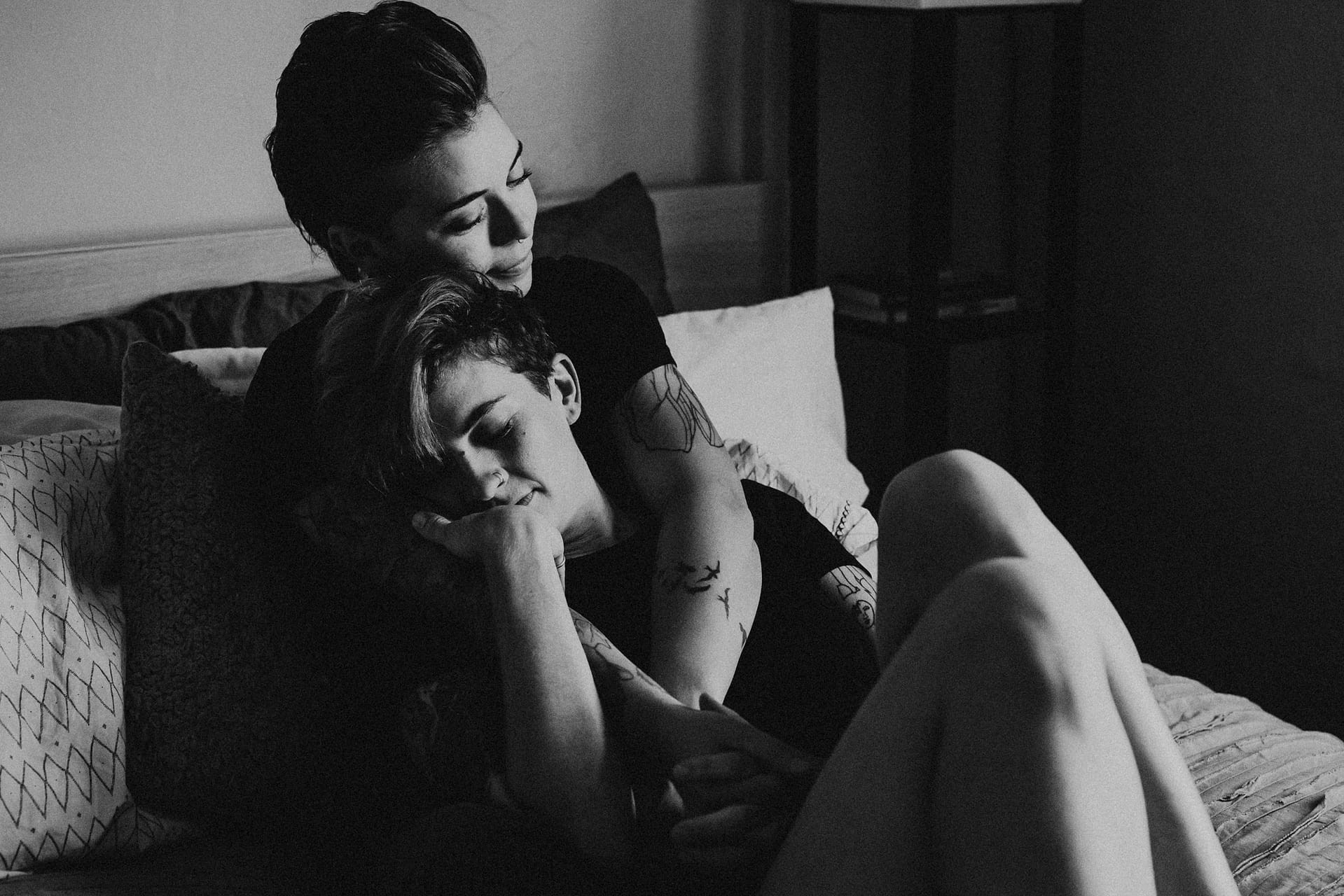 We started out our session just by chatting for about 45 minutes about how they met, what love means to them both & I watched how they connected with each other. Pulling from a recent Instagram post Nini made with some photos from our session, she says, “She asked us what love was, for us. Home, we said. A sanctuary. A resting place, a safety. Gratitude for the small, necessary strengths and tendernesses of each day. And it’s the most precious thing in the world.” And those words rang so true in their session. In the softest moments they pulled each other in and kept each other close. They gave tender kisses and soft touches. They were playful and loving and at the end of our session I asked them to dance together and tears fell and we all group hugged because of the beauty of the moment.