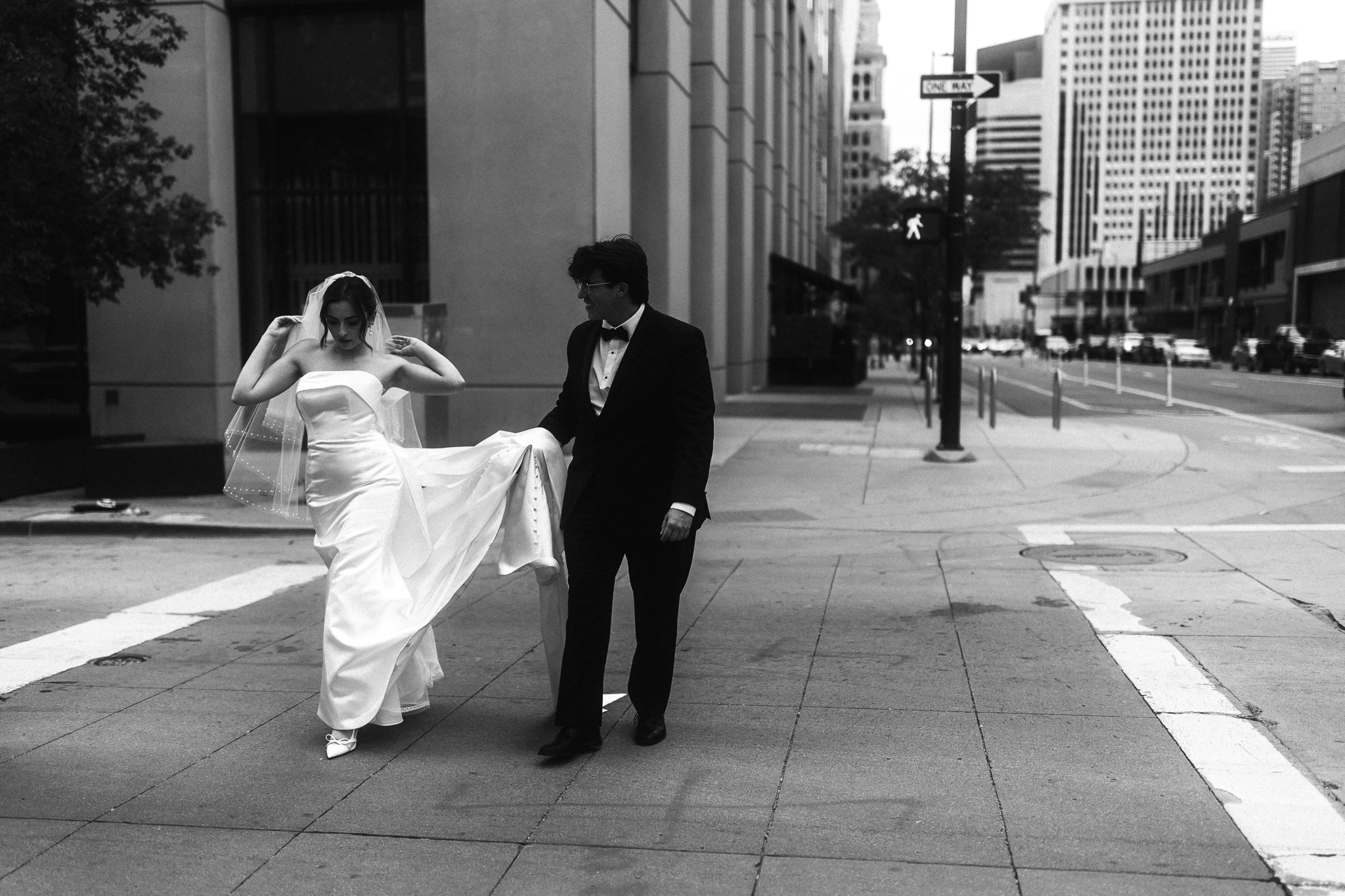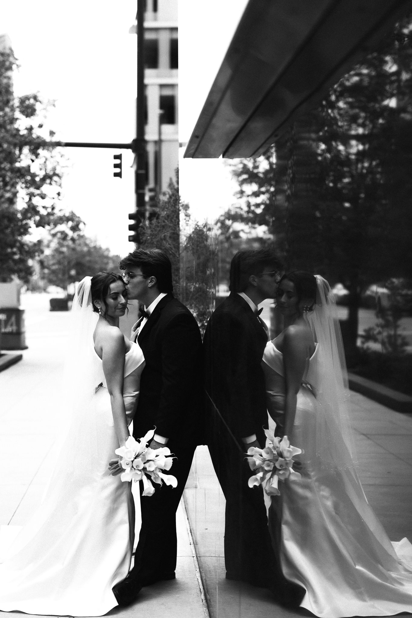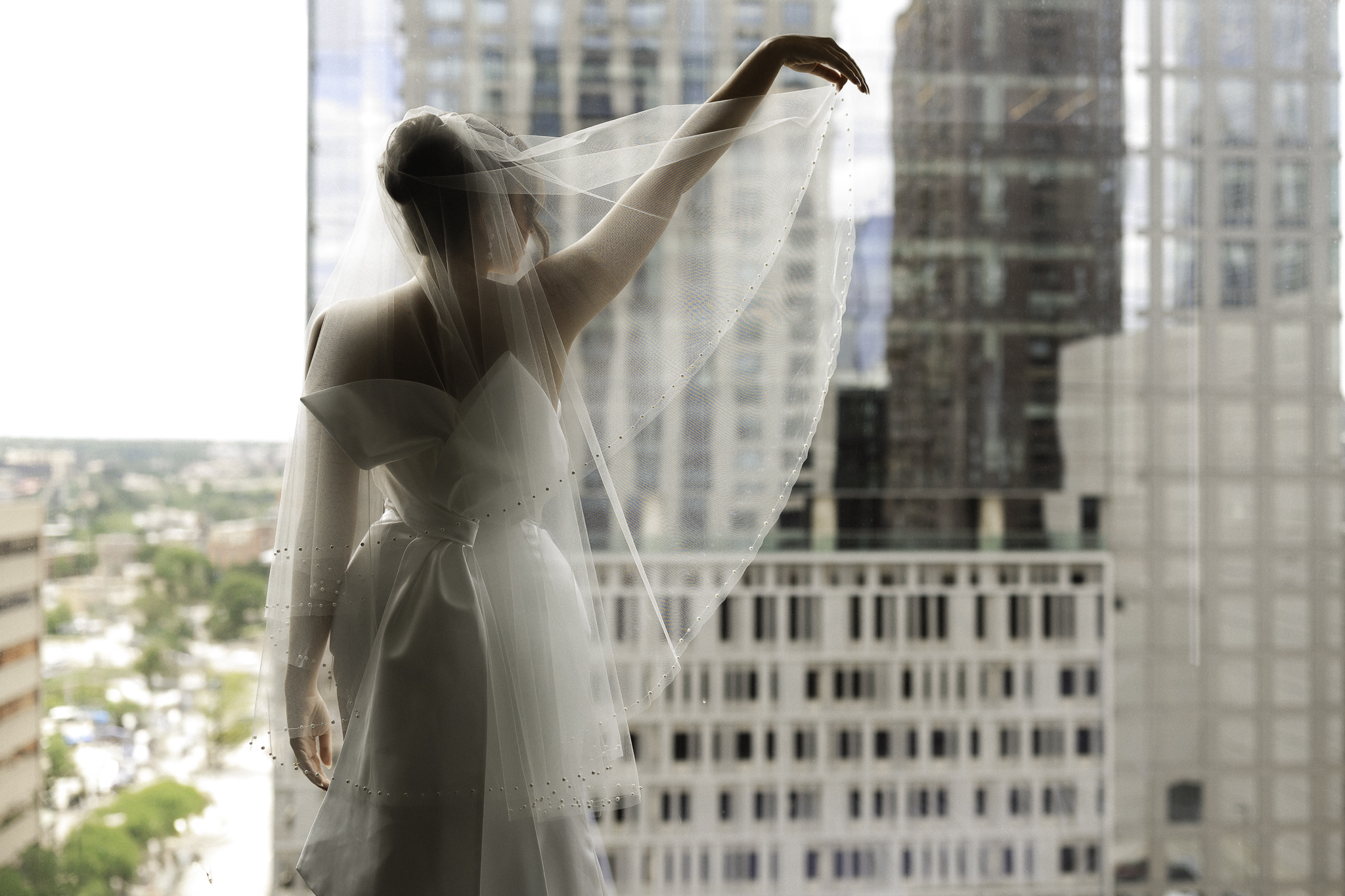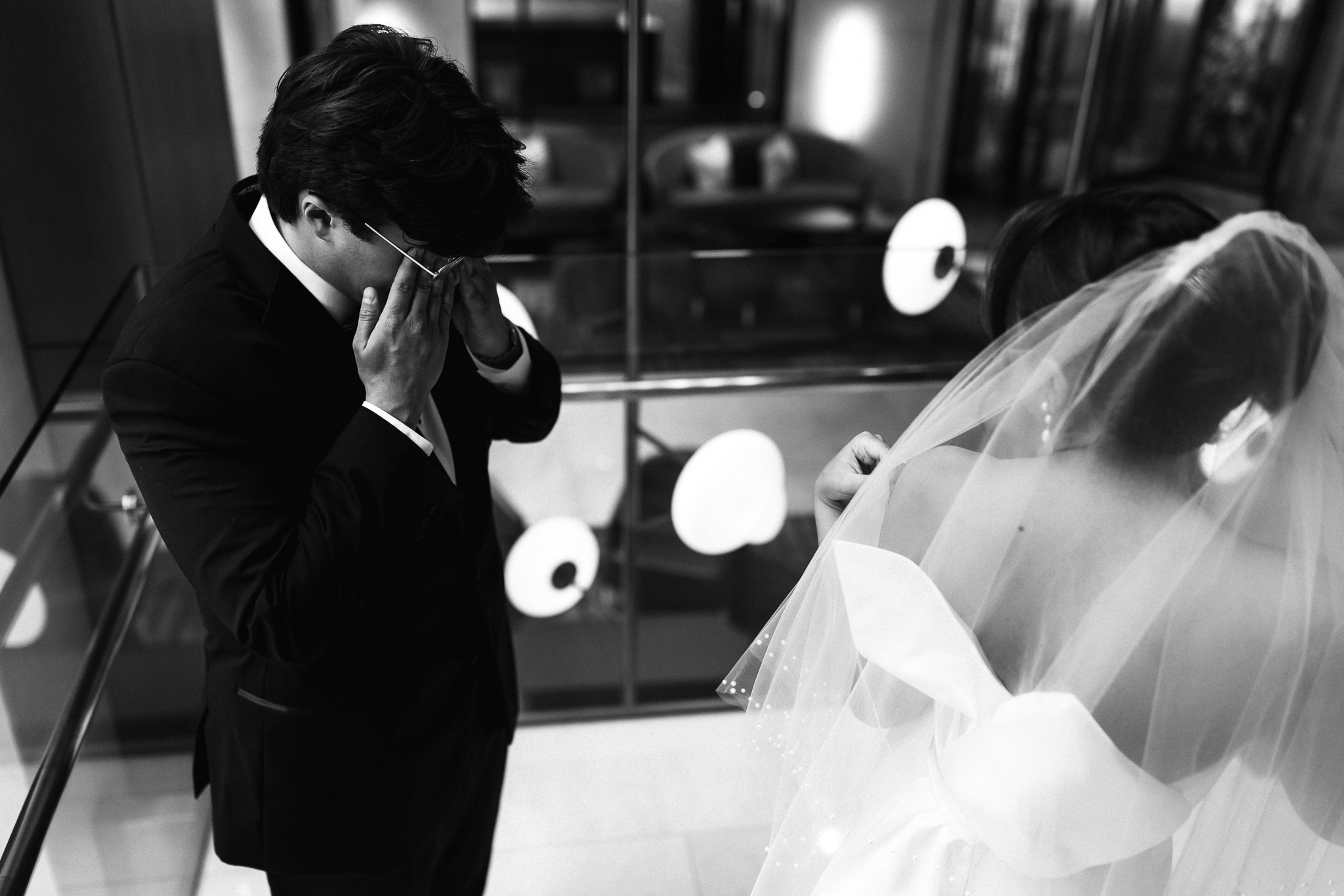 Camille and Kaden had a really beautiful first look on the stairs of the Four Seasons. I had previously photographed their engagement session at Union Station where we got this really stunning shot of them coming up the escalator with glass on both sides creating a fun two way reflection shot and I got to mimic that same look on these glass walls stairs. Absolutely love it when I get to play with reflections and composition within storytelling.