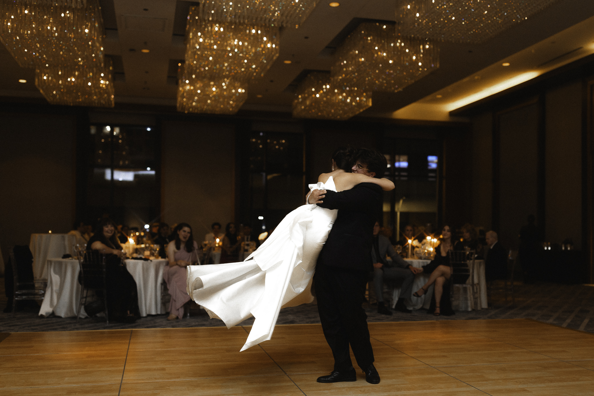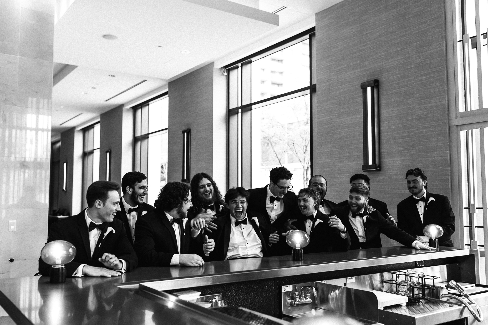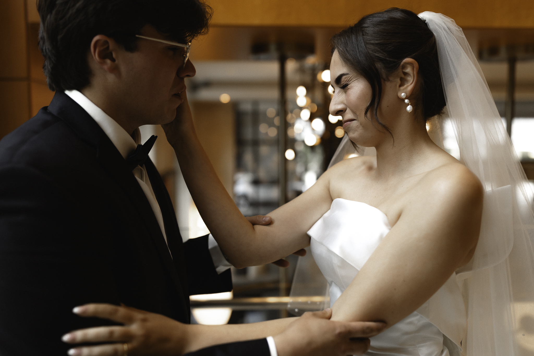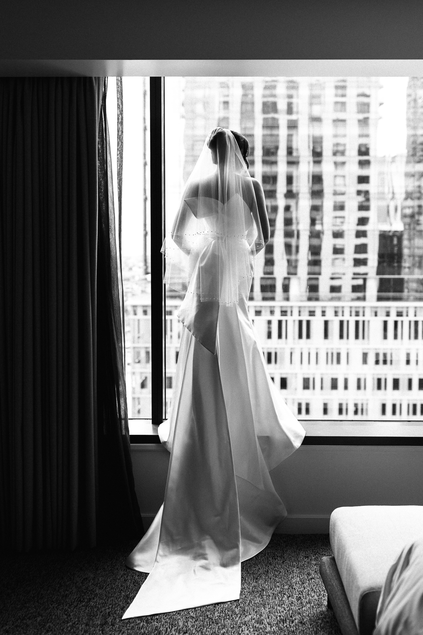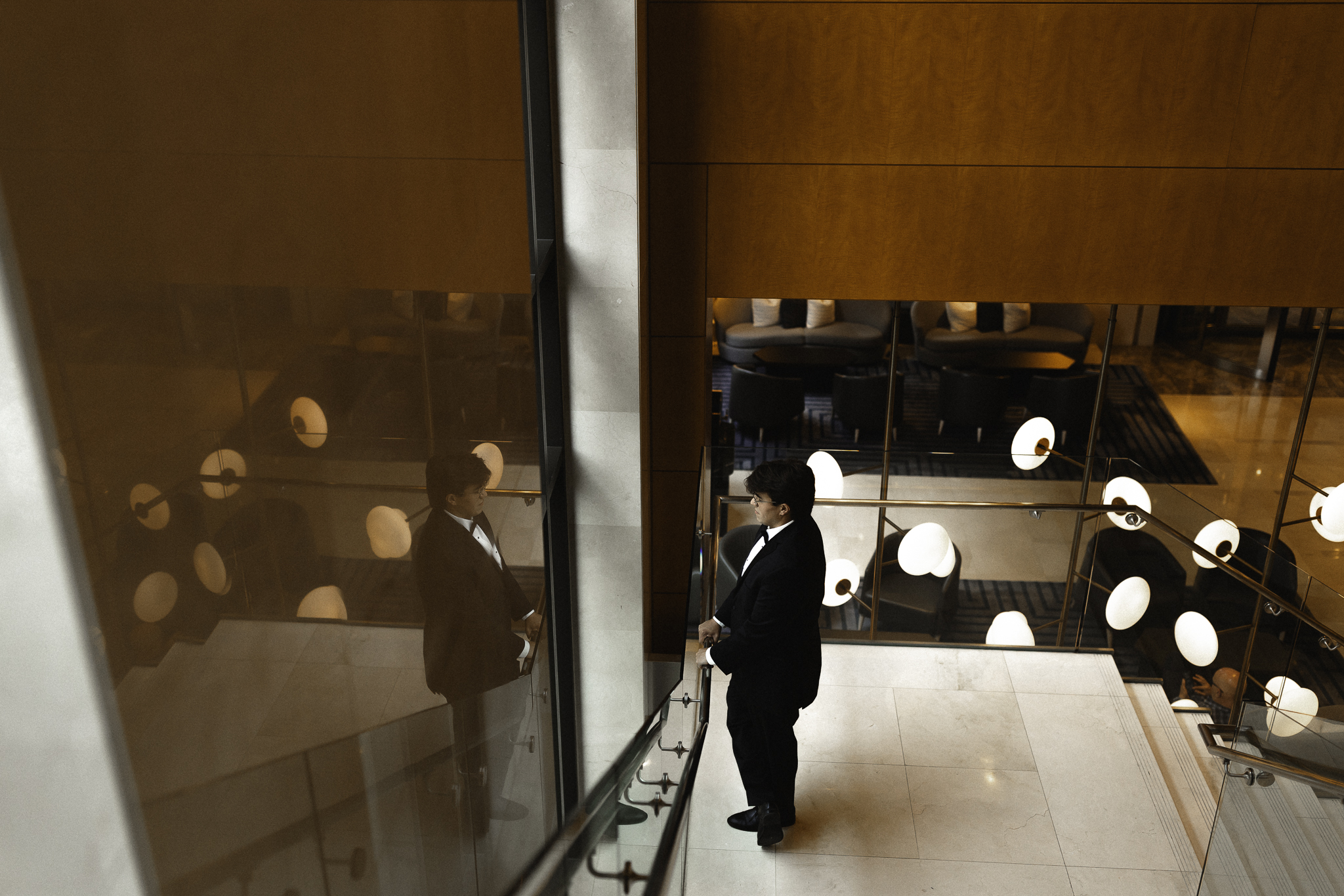 Camille and Kaden had a really beautiful first look on the stairs of the Four Seasons. I had previously photographed their engagement session at Union Station where we got this really stunning shot of them coming up the escalator with glass on both sides creating a fun two way reflection shot and I got to mimic that same look on these glass walls stairs. Absolutely love it when I get to play with reflections and composition within storytelling.