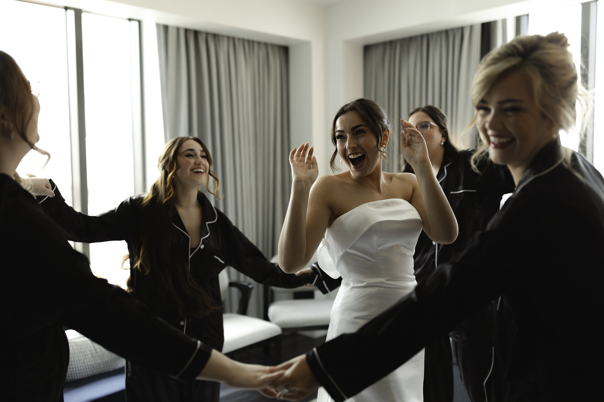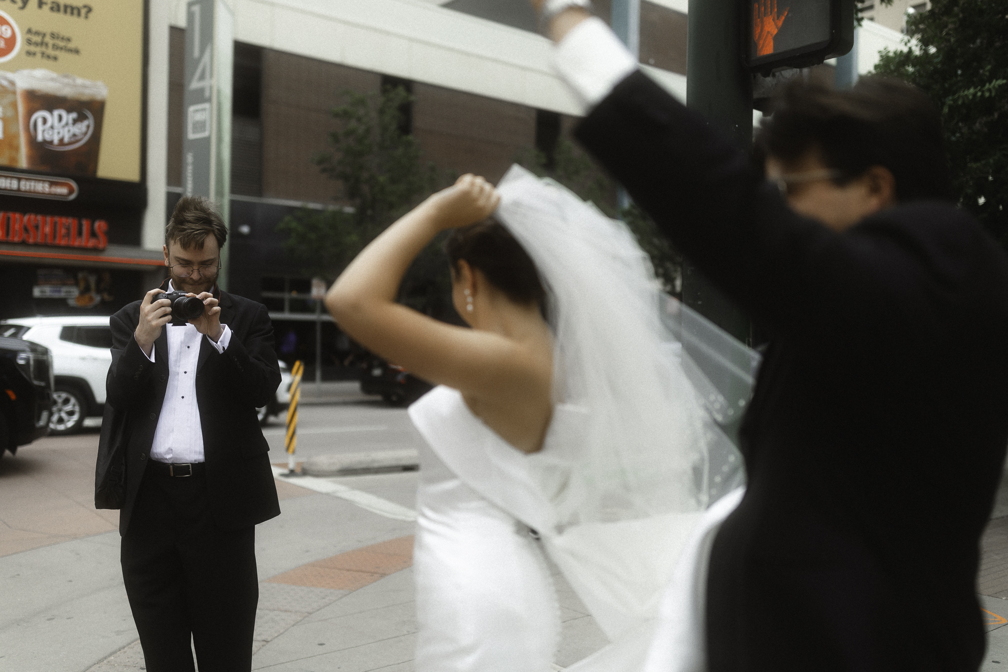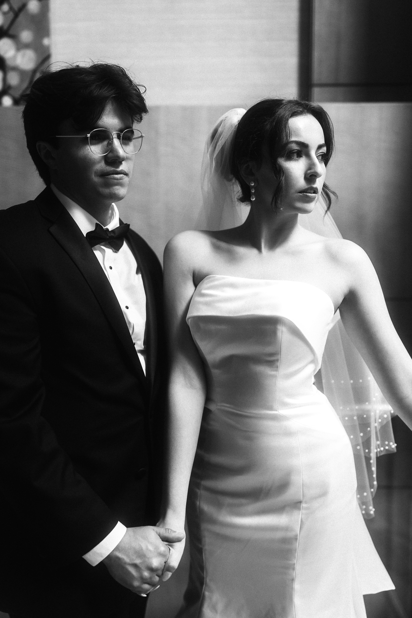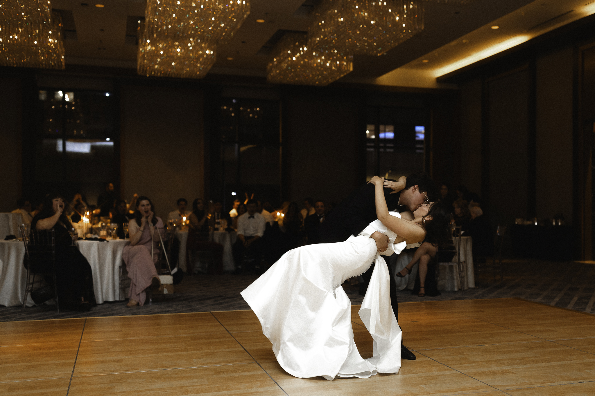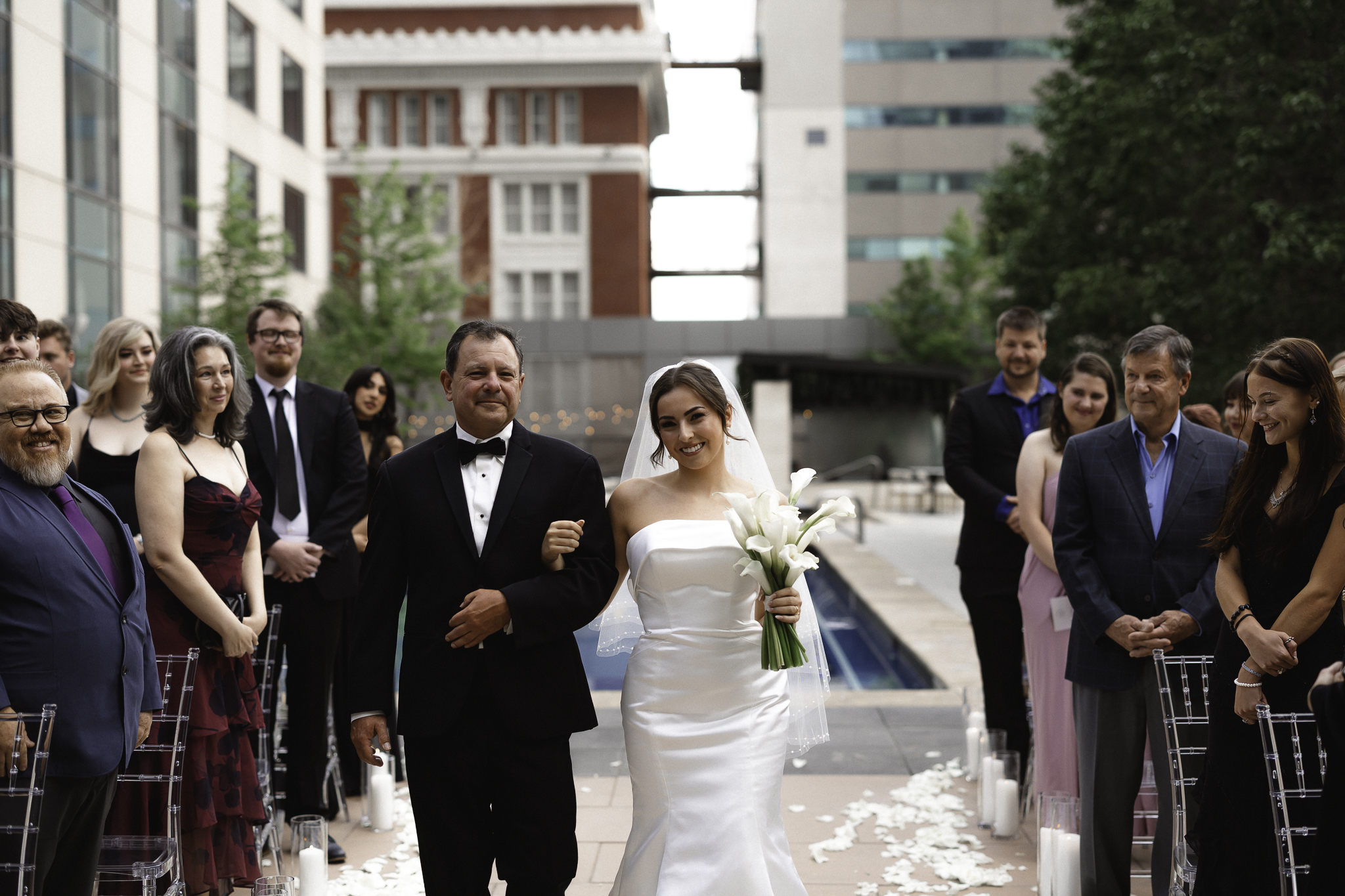 Camille and Kaden had a really beautiful first look on the stairs of the Four Seasons. I had previously photographed their engagement session at Union Station where we got this really stunning shot of them coming up the escalator with glass on both sides creating a fun two way reflection shot and I got to mimic that same look on these glass walls stairs. Absolutely love it when I get to play with reflections and composition within storytelling.