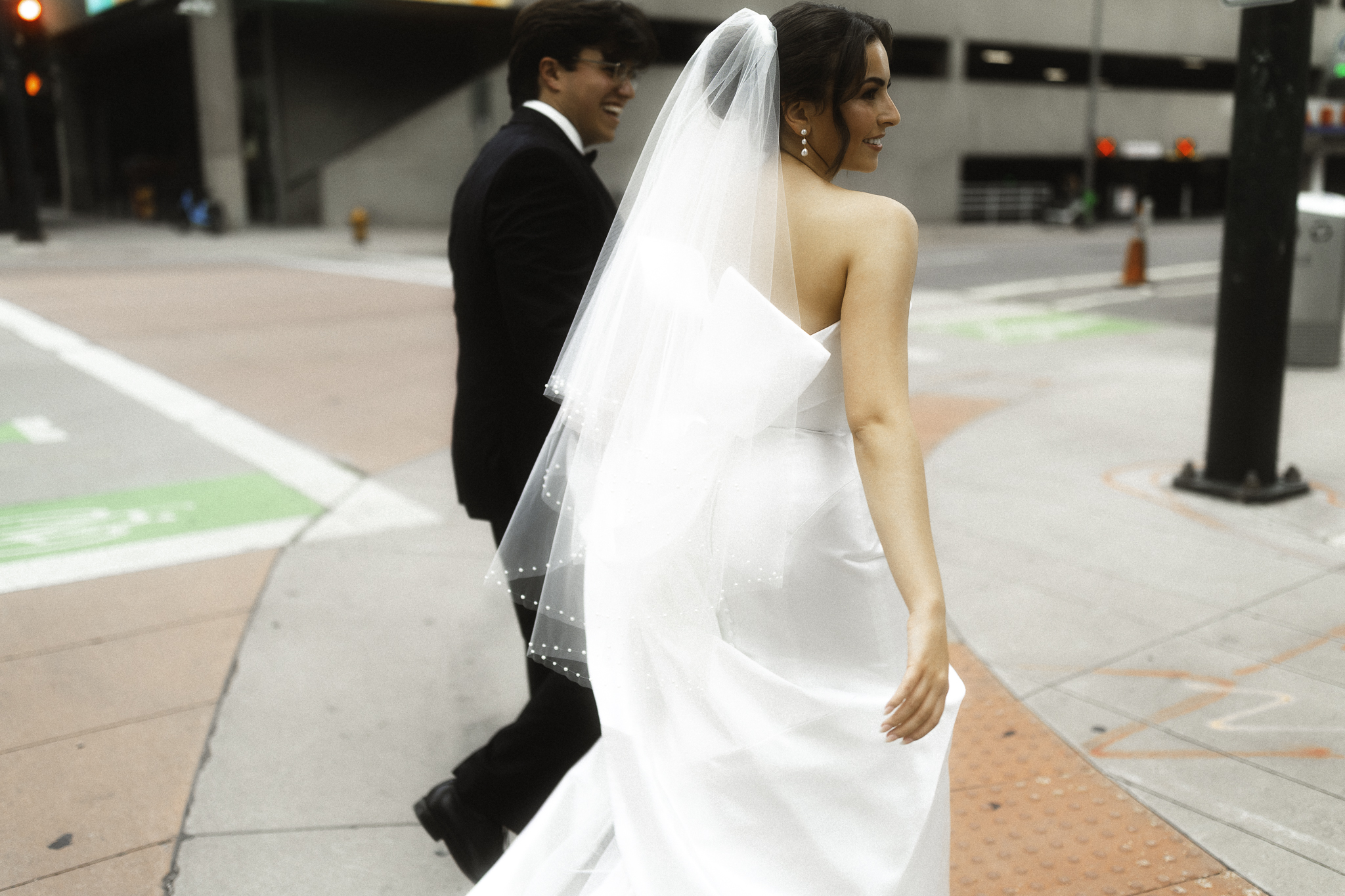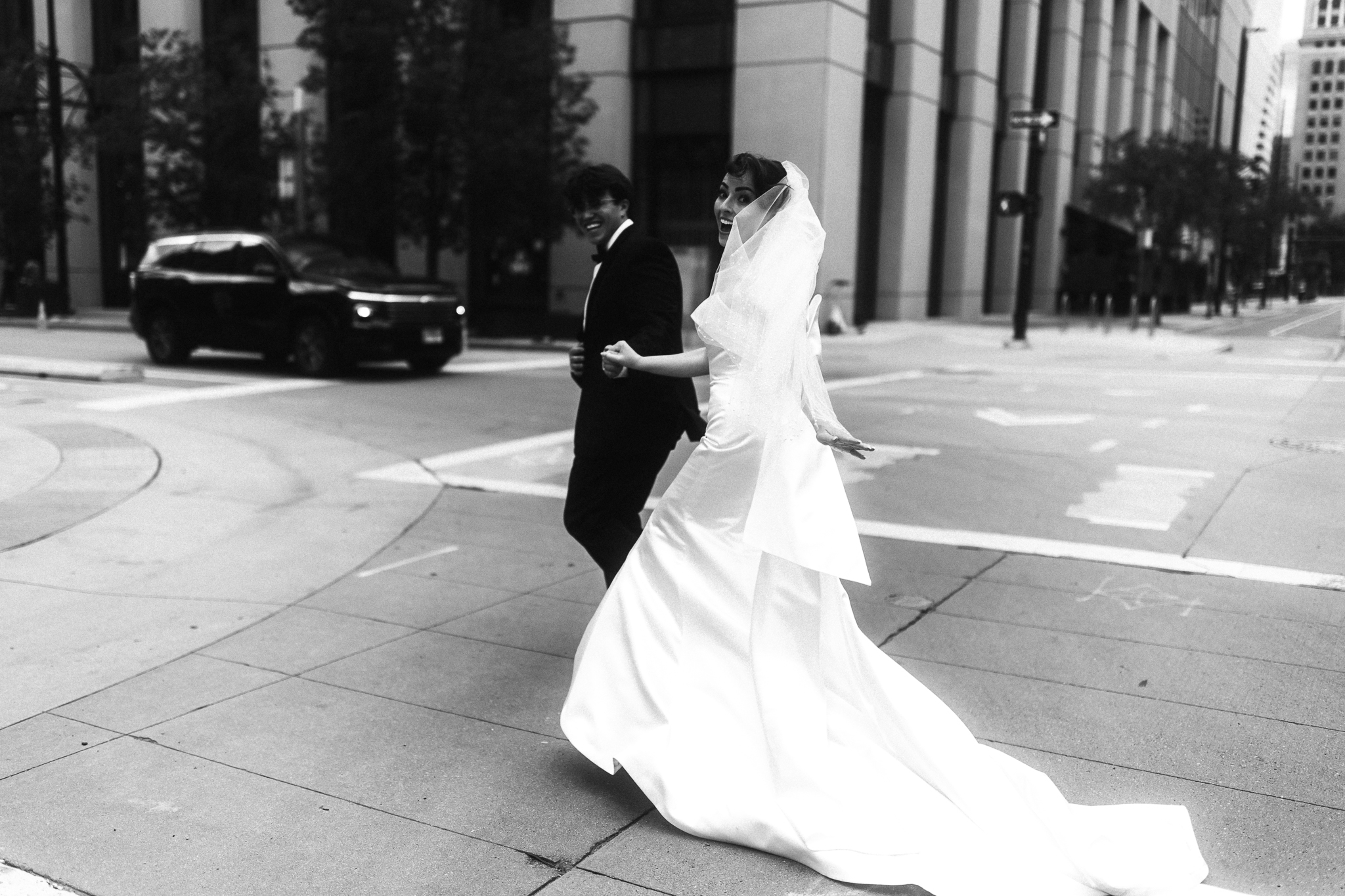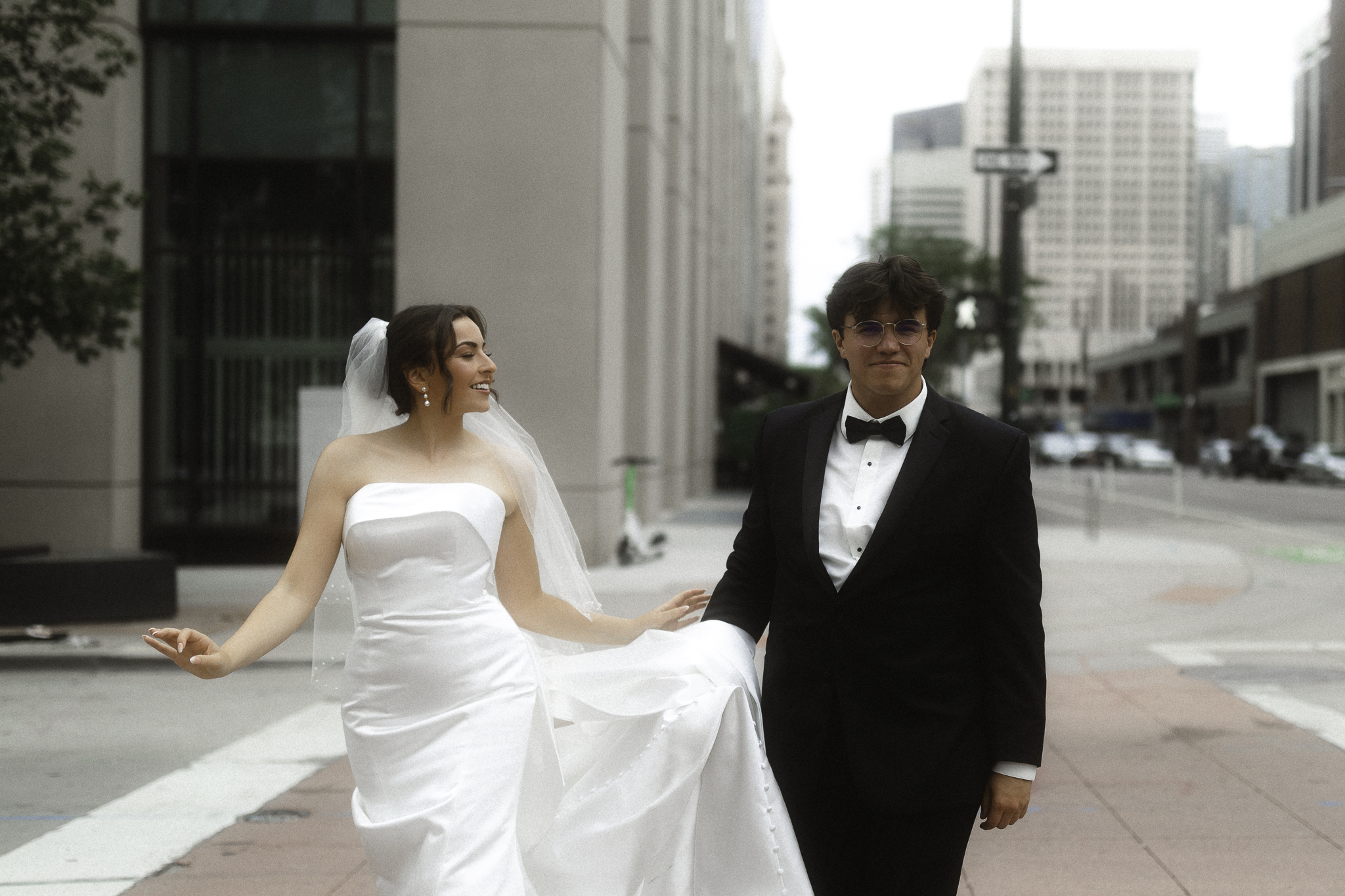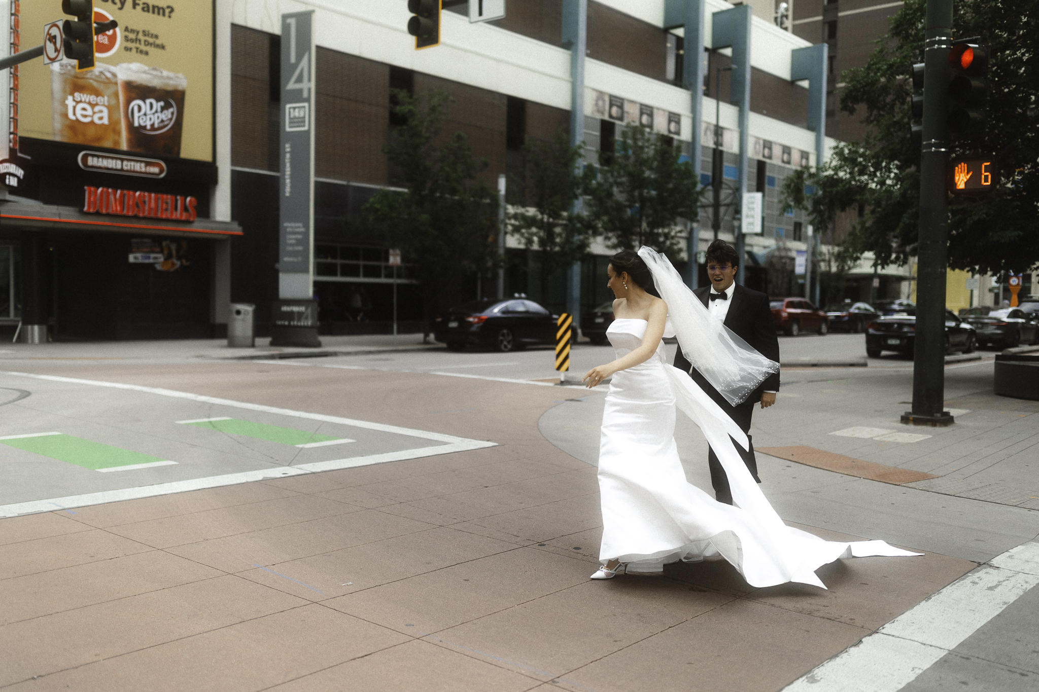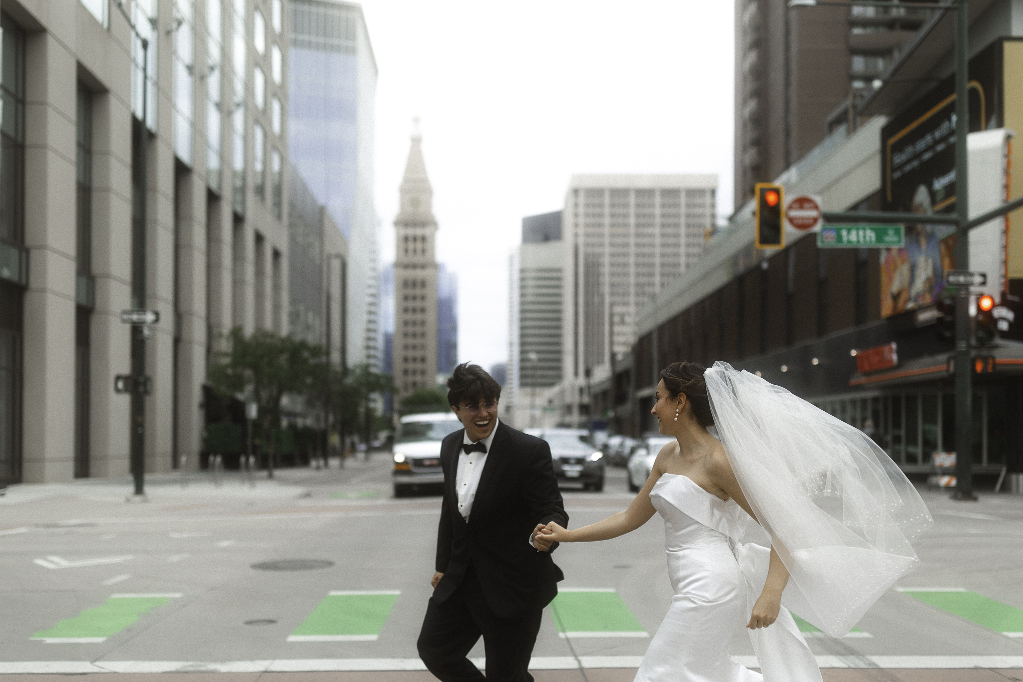 Camille & Kaden had a timeless & beautiful Denver Four Seasons wedding this June with perfect springtime weather. The clouds rolling in and out with a tiny sunshine rain during their cocktail hour made for some city magic. We had the best time romping around Denver & the hotel for their couples portraits. Camille really loves that “runaway wind swept bride” feeling and Kaden has such a classic handsome vibe and they really leaned into the romance as we roamed the halls of the hotel.