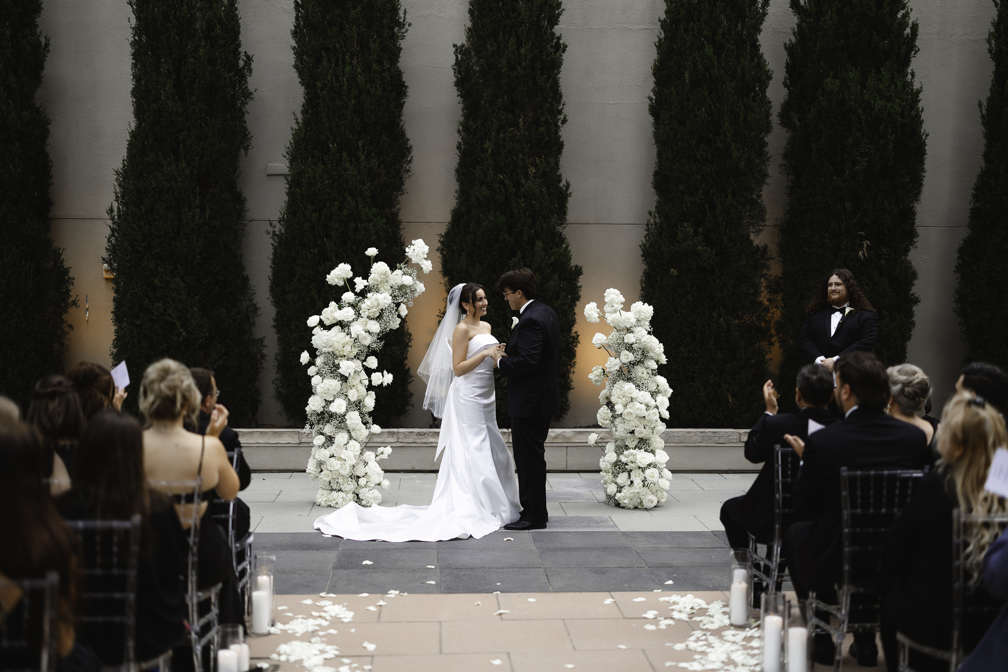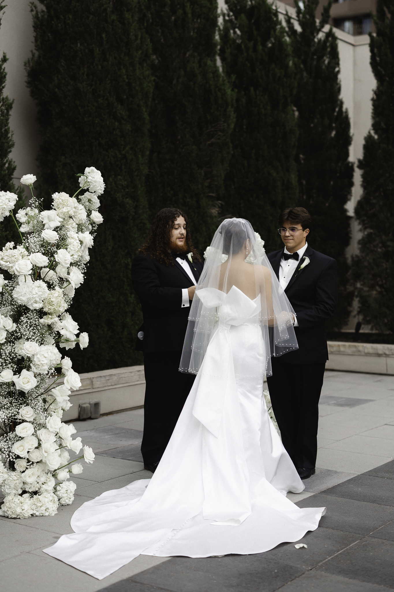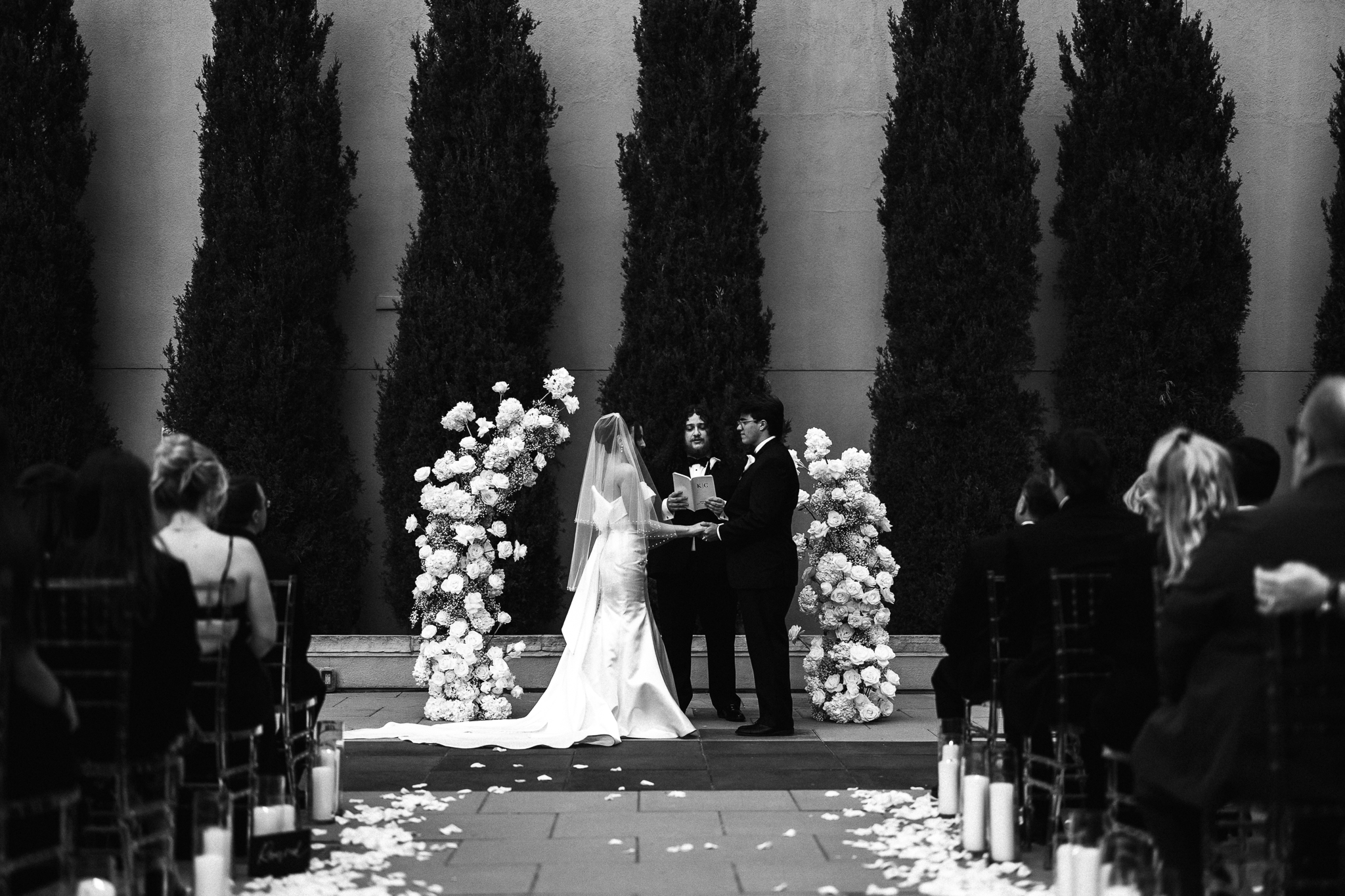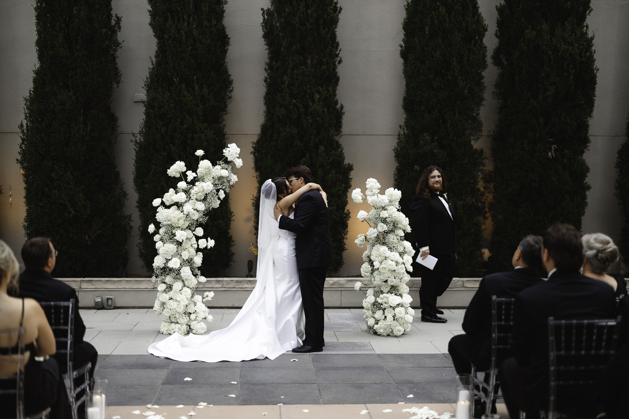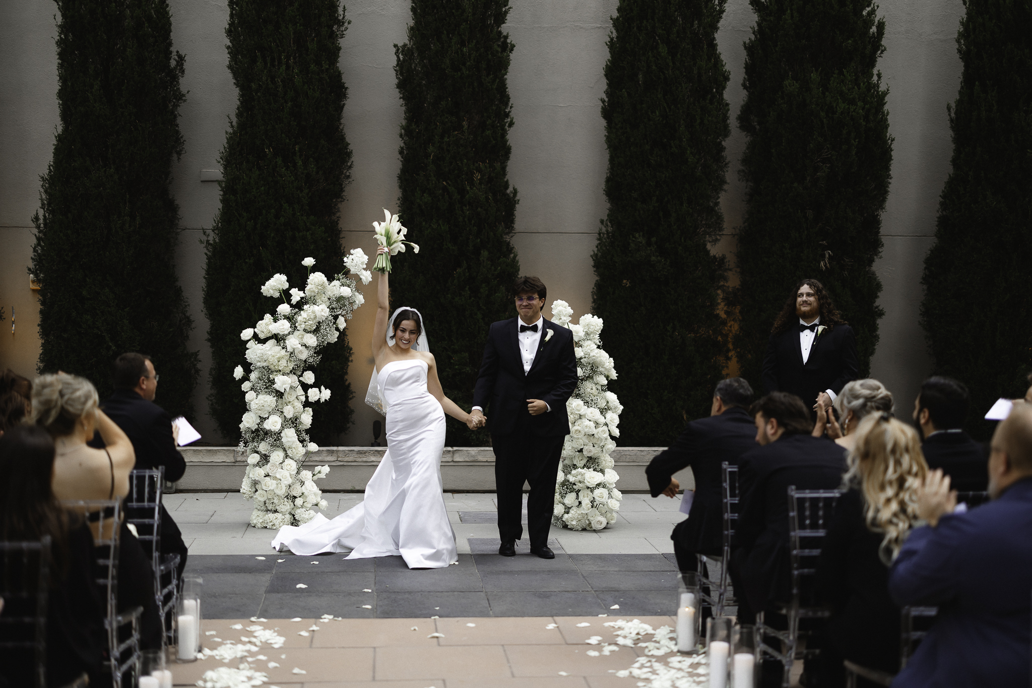 We were lucky enough to do all of their family and friend photos before their ceremony so that they could join their cocktail hour and celebrate with their friends and family. I absolutely love when my couples do all their formal photos prior to ceremony because it really helps them be able to celebrate the commitment they just made to each other. We did their formal photos in front of the incredible arch that A Florae created with the most stunning white florals. Urban Events did an excellent job planning this stunning Denver Four Seasons Wedding.