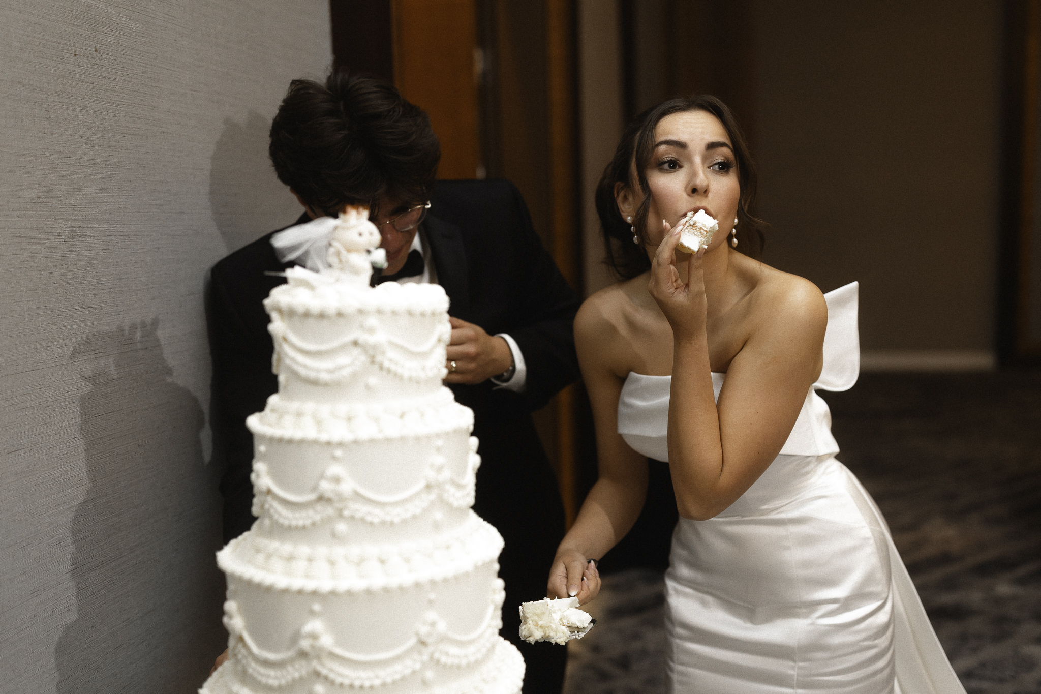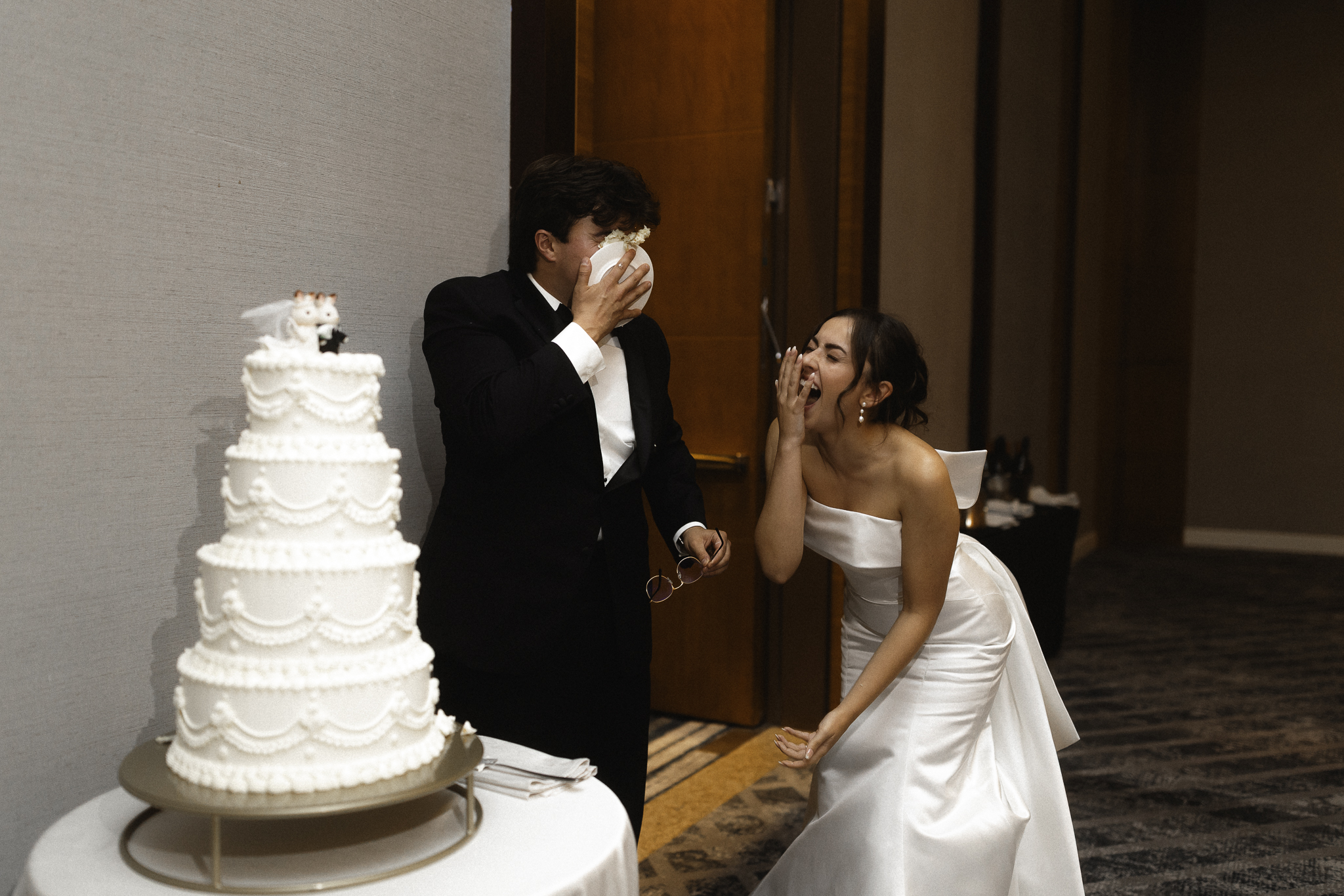 Camille & Kaden had a beautiful reception with touching toasts & a pretty epic dance floor. A huge plus side of a Denver Four Seasons wedding is that their wedding packages are inclusive and their catering and events staff is fantastic. The Four Seasons pastry chef, Molly Coen, created an elegant and stunning cake that they finished off with the cutest lil wedding topper that is exactly Camille’s cute quirky style.