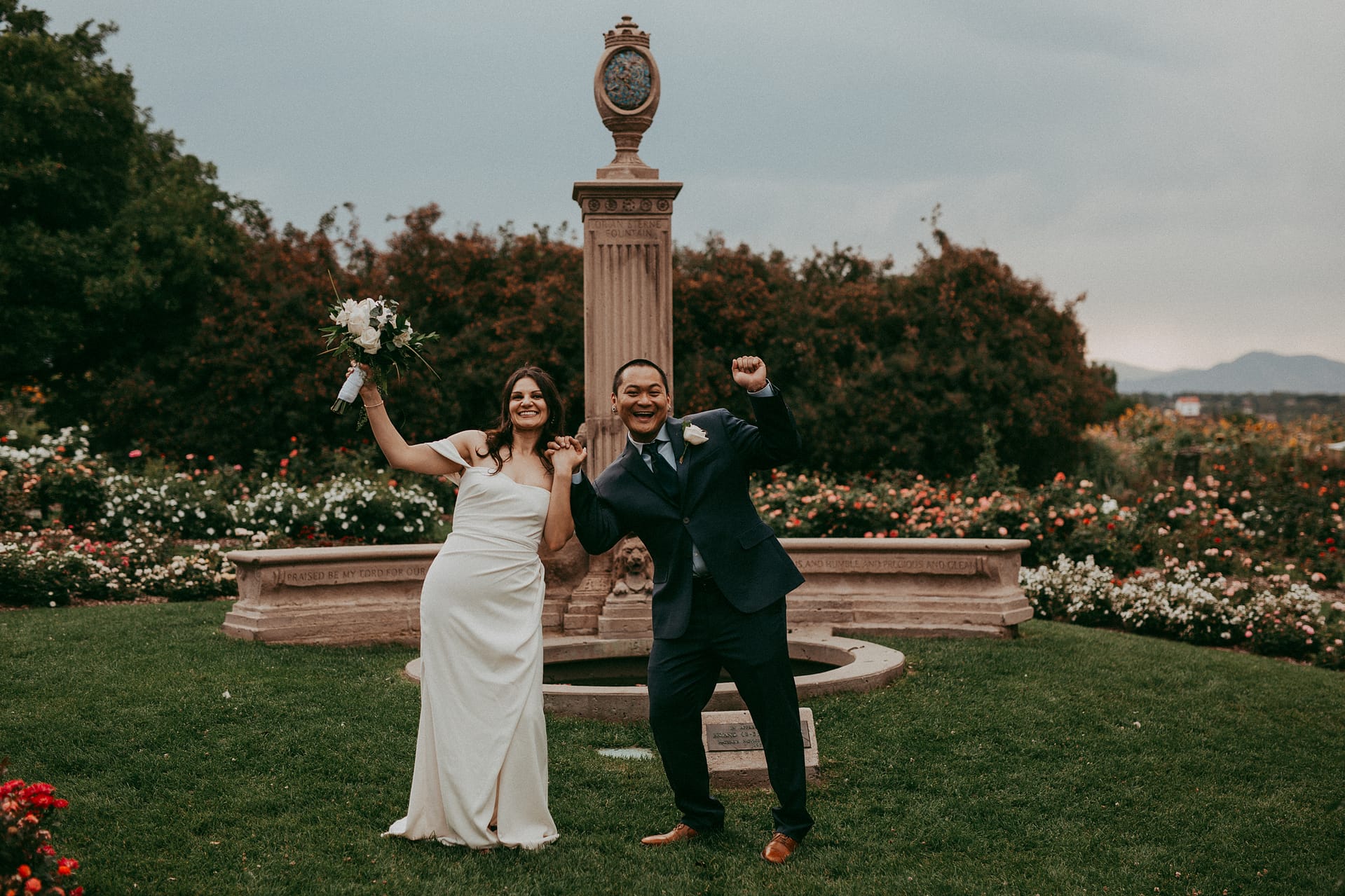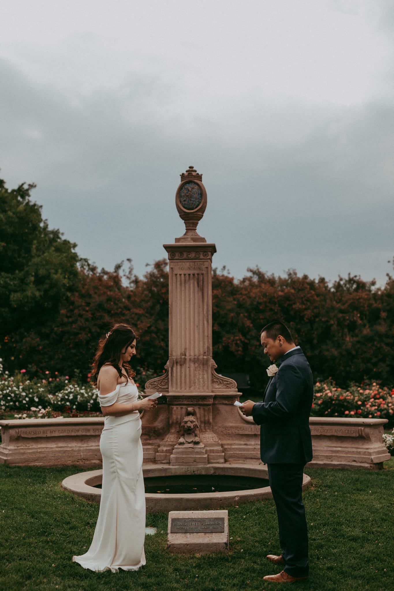 Jalisca & Patrick had to cancel their larger wedding due to the worldwide Covid pandemic that we all found ourselves in 2020. They choose to instead have a rose garden elopement at the Littleton war memorial rose garden with just their closest family members in attendance. It was an incredible afternoon- we had been having summer storms in the afternoons frequently and their wedding day was no different. The stormy skies made for some incredible drama & light and as we wrapped everything up the rain greeted us.