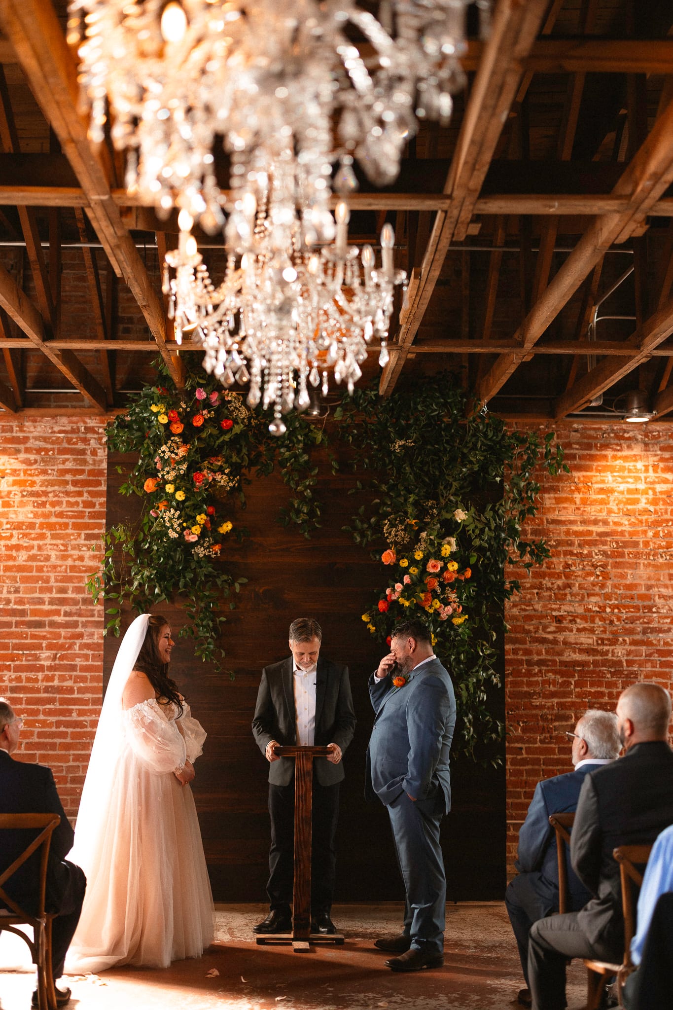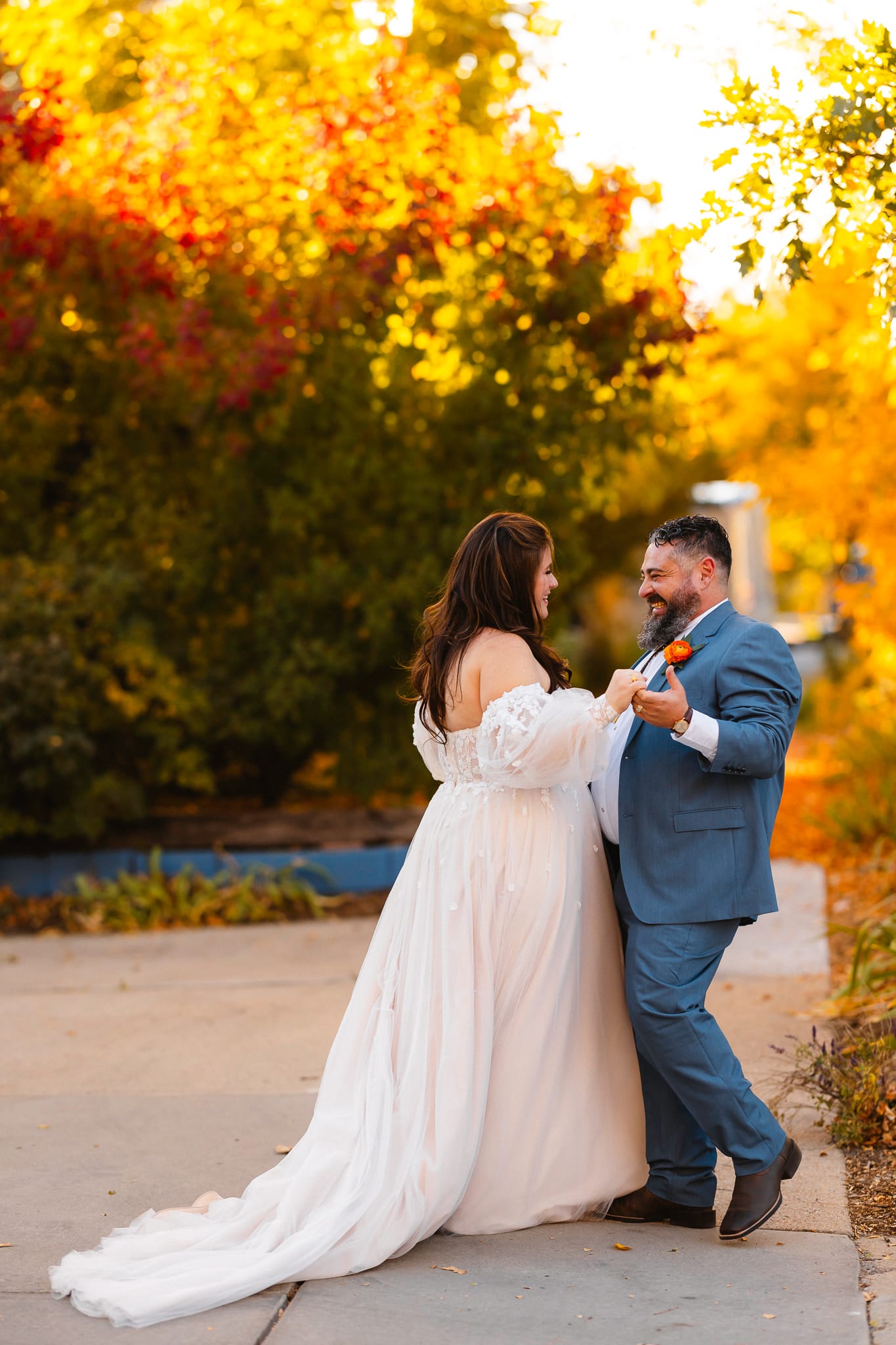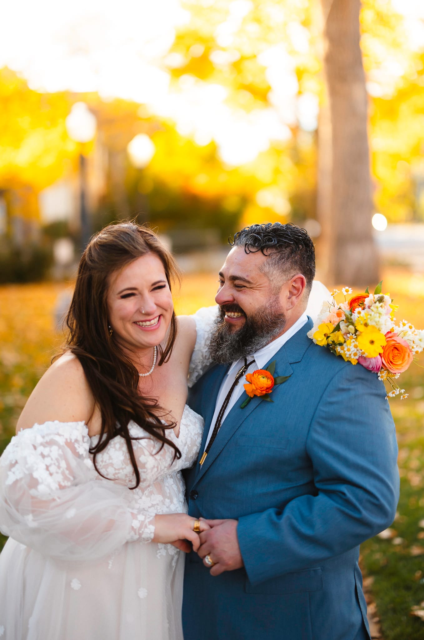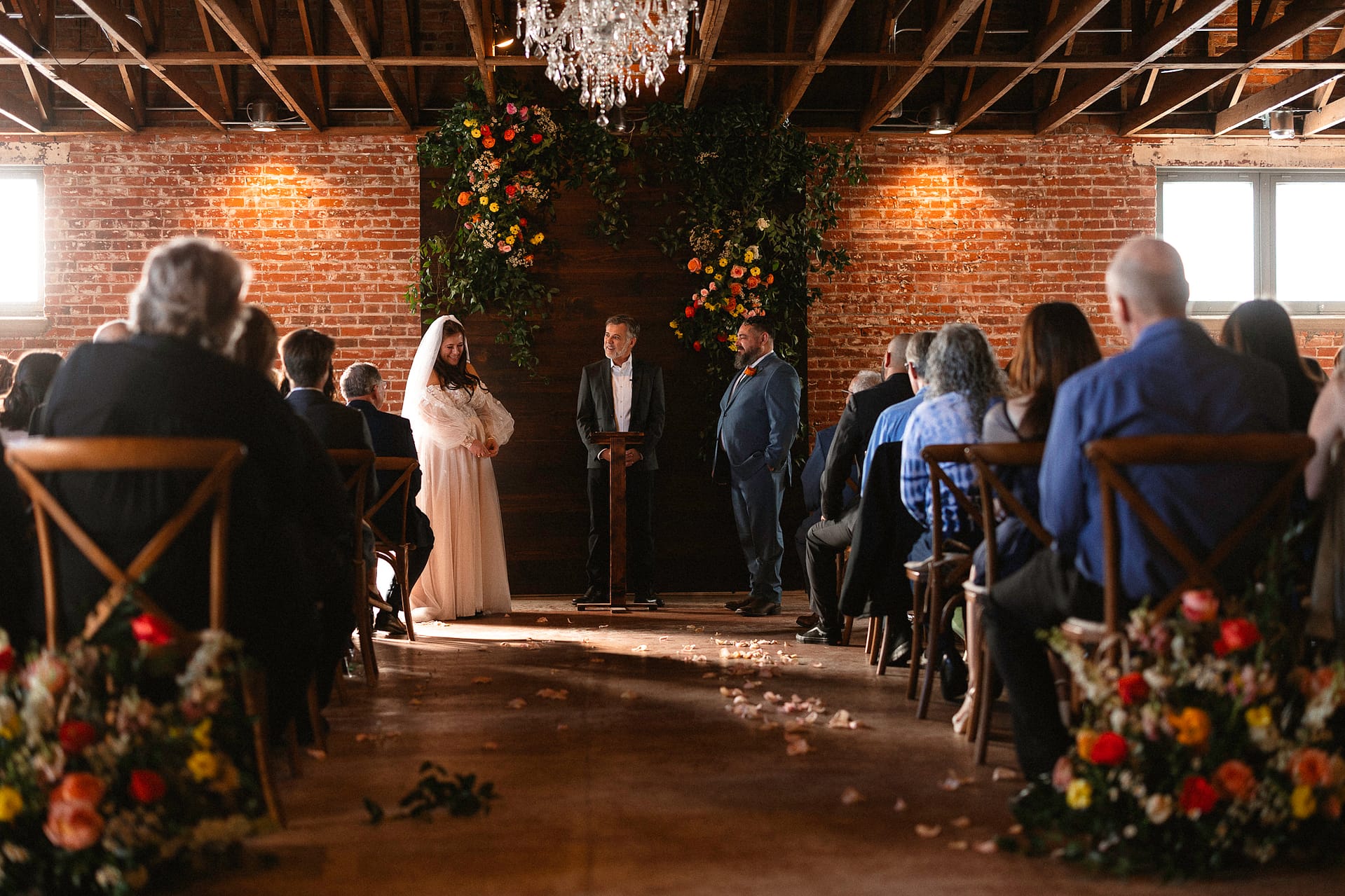 Rachel & Charlie had such a colorful, beautiful St Vrain wedding at the gorgeous event center in Longmont Colorado. Fall was really showing off it’s colors but so were the florals that they had beautifully displayed all throughout their ceremony. The St Vrain is in downtown Longmont and is one of the most quaint & lovely venues Colorado has to offer. Industrial in nature it provides a fantastic neutral foundation to create the wedding of your dreams.