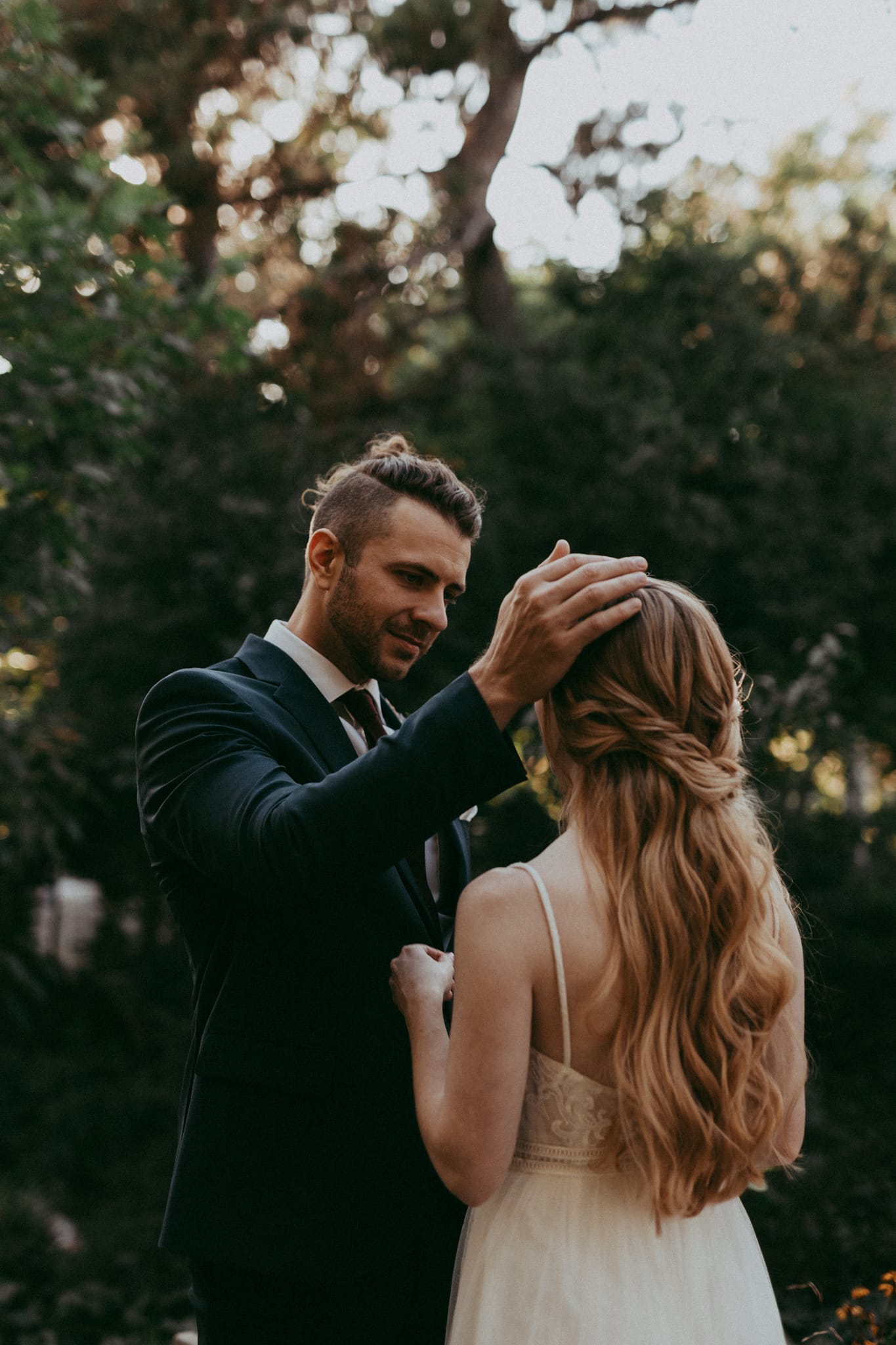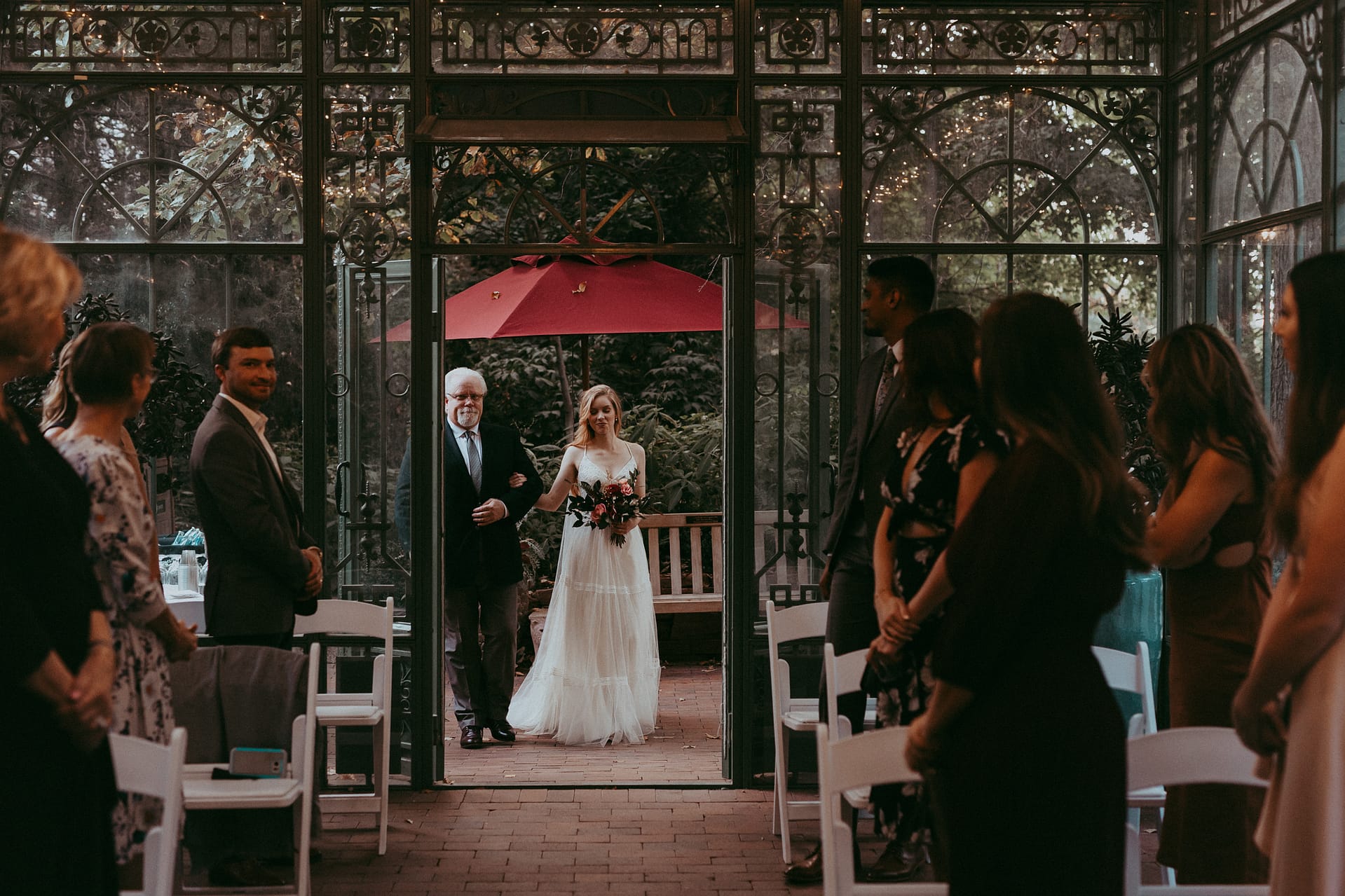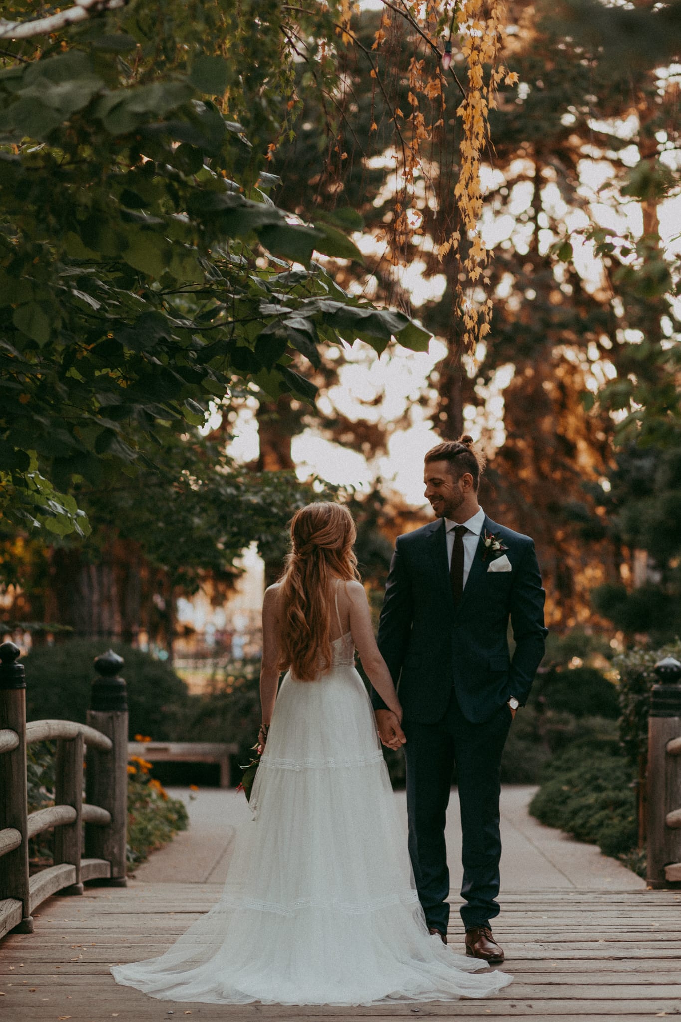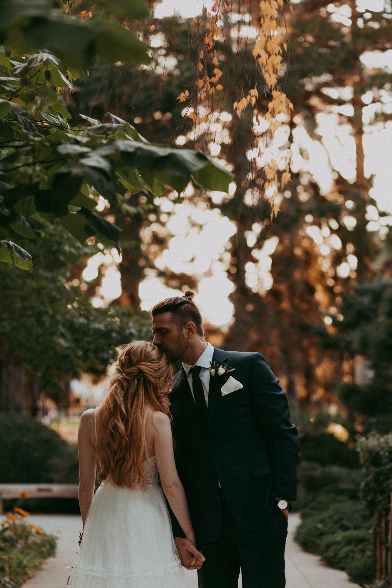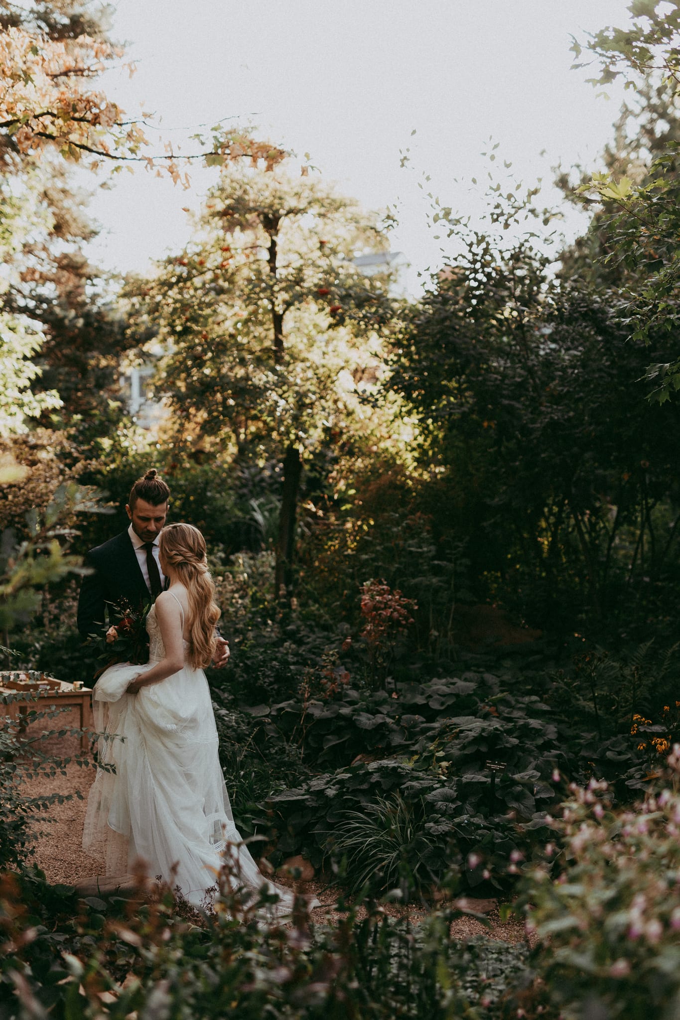 Kate & Josh had their dreamy evening Woodland Mosaic wedding at the Denver Botanic Gardens right at the height of autumn and had the best colors you could ask for. They asked that their photos reflect the ambiance of their day and I was so stoked to get to document them. They had their closest friends and family, including Kate’s sister who she has a very strong relationship with. She even surprised her with a dance after she danced with her father. Josh was so adorably nervous during their first look and I just loved how intimate and loving they were together.